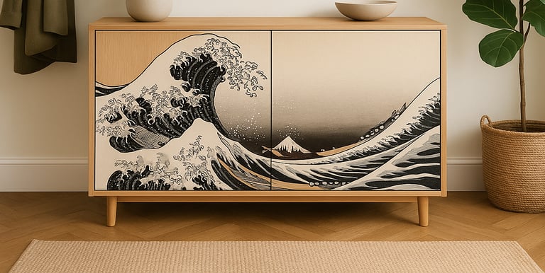 Des créations uniques, artistiques et contemporaines : notre impression UV transforme chaque meuble en pièce unique.